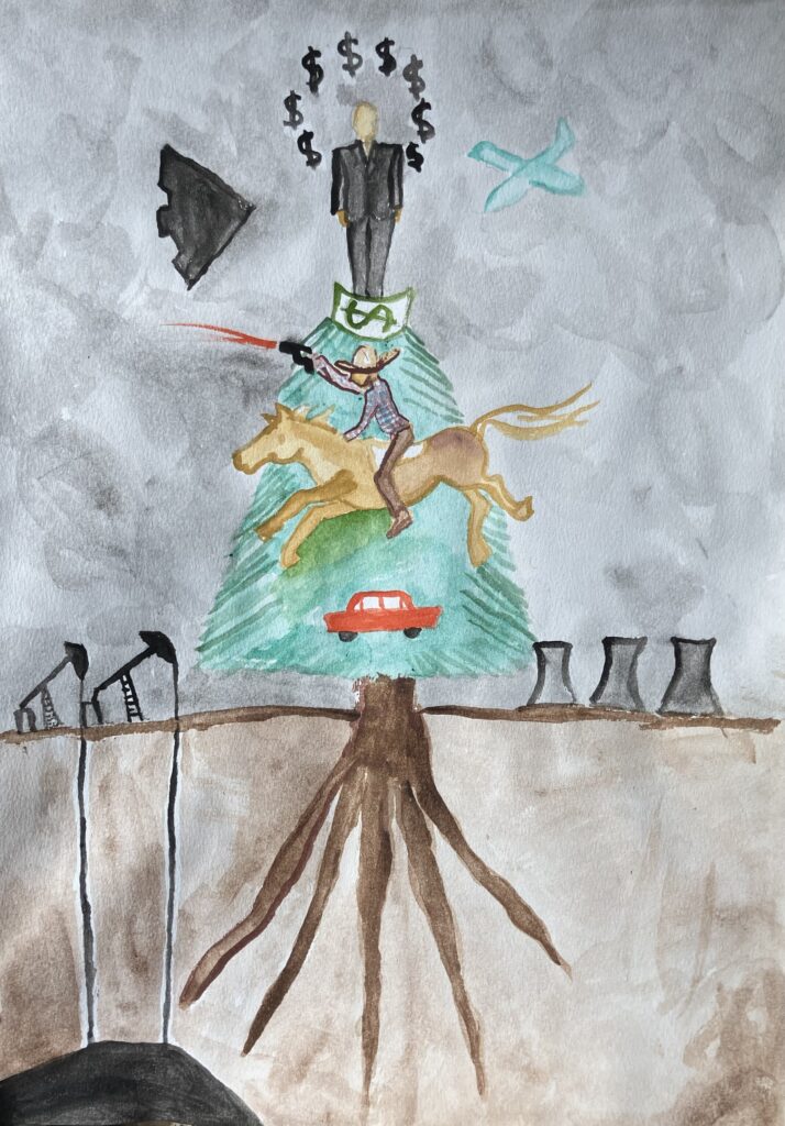 The root values from which this tree grows is not life! money. power. This is the present system most of us live under. It is not helping us survive!